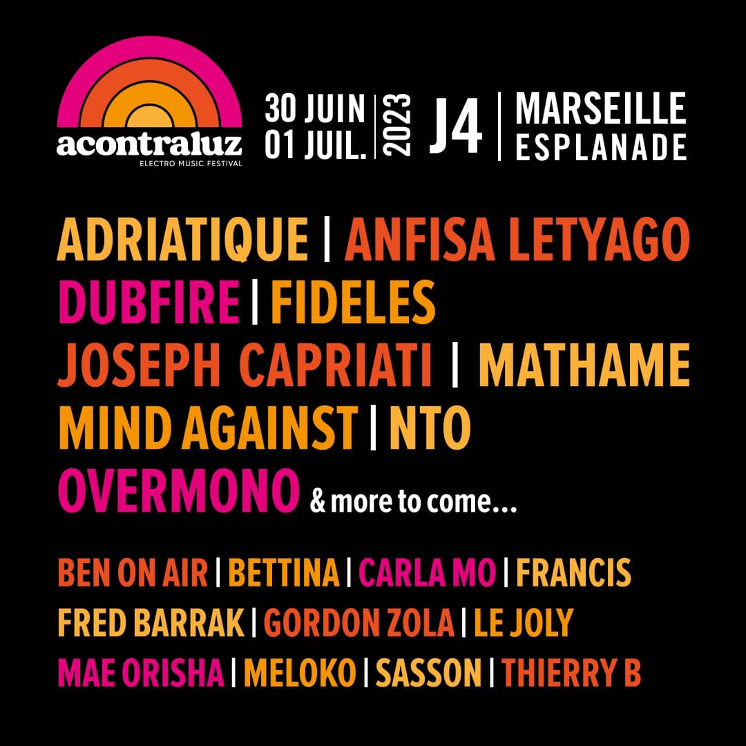 Le festival Acontraluz fait son grand retour pour sa 9ème édition le vendredi 30 juin et samedi 1er juillet 2023 avec une programmation brillante pour les fans de techno mélodique dans un lieu juste magnifique à l’Esplanade du J4 face à la mer !