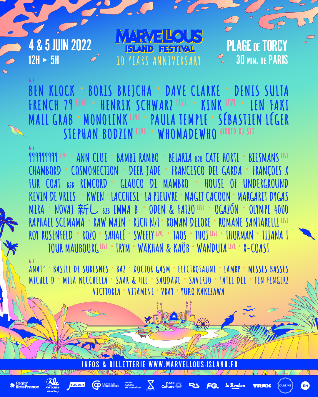Le 4 et 5 juin prochain Marvellous Island Festival fait son retour sur la plage de Torcy à 30 minutes de Paris pour fêter les 10 ans !!