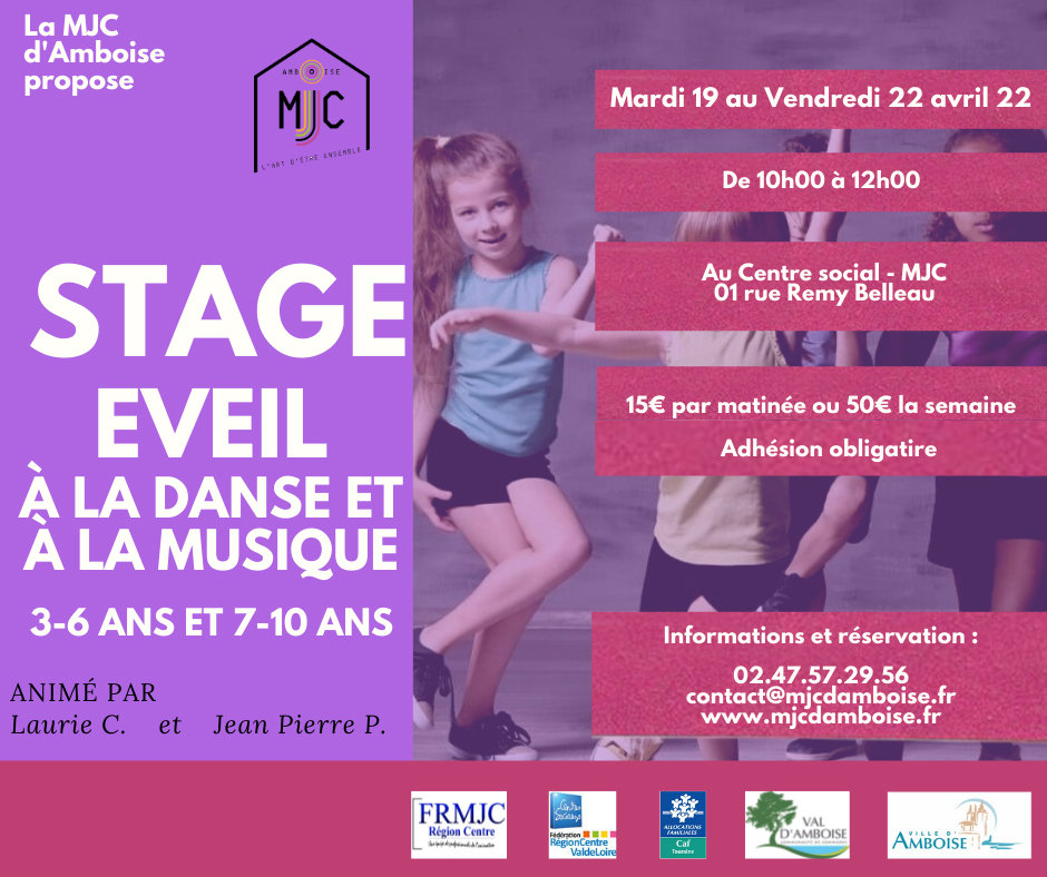 La MJC d’Amboise propose un stage d’éveil à la danse et à la musique pour les enfants du mardi 19 au vendredi 22 avril au Centre social – MJC.